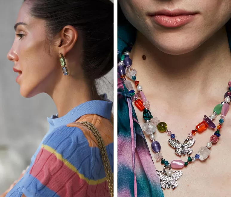 Жемчуг — это вечная классика, но в этом году особой популярностью пользуются именно барочные жемчужины. Их необычные формы и естественные изгибы привносят элемент богемности и роскоши в любой образ. Украсьте свои изделия этим трендом, добавив благородства и утонченности.Яркие цвета и акценты