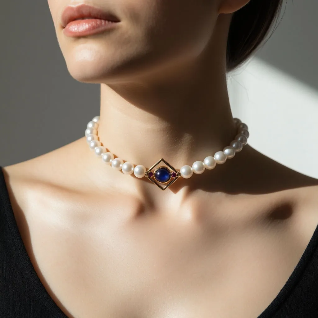 - Ожерелья‑чокеры и короткие нити с контрастными бусинами.