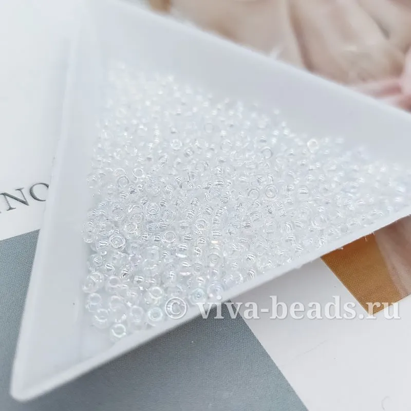 Бисер японский MIYUKI размер 11 Crystal AB, 2x1.3 мм, отверстие ок. 0.8 мм (7316-RR250)