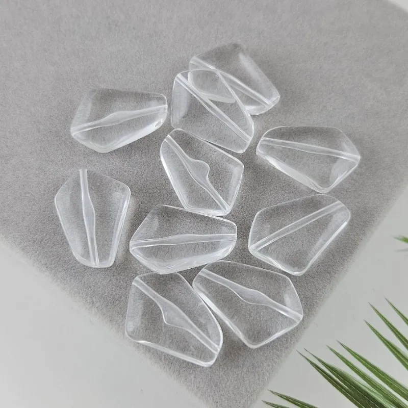 Бусина выполнена из высококачественного прозрачного акрила, который красиво преломляет свет. Неправильная, асимметричная форма — главная «изюминка» фриформ-бусин: каждый экземпляр уникален. Гладкая поверхность с лёгкими потёртостями придаёт изделию особый шарм и подчёркивает ручную работу.