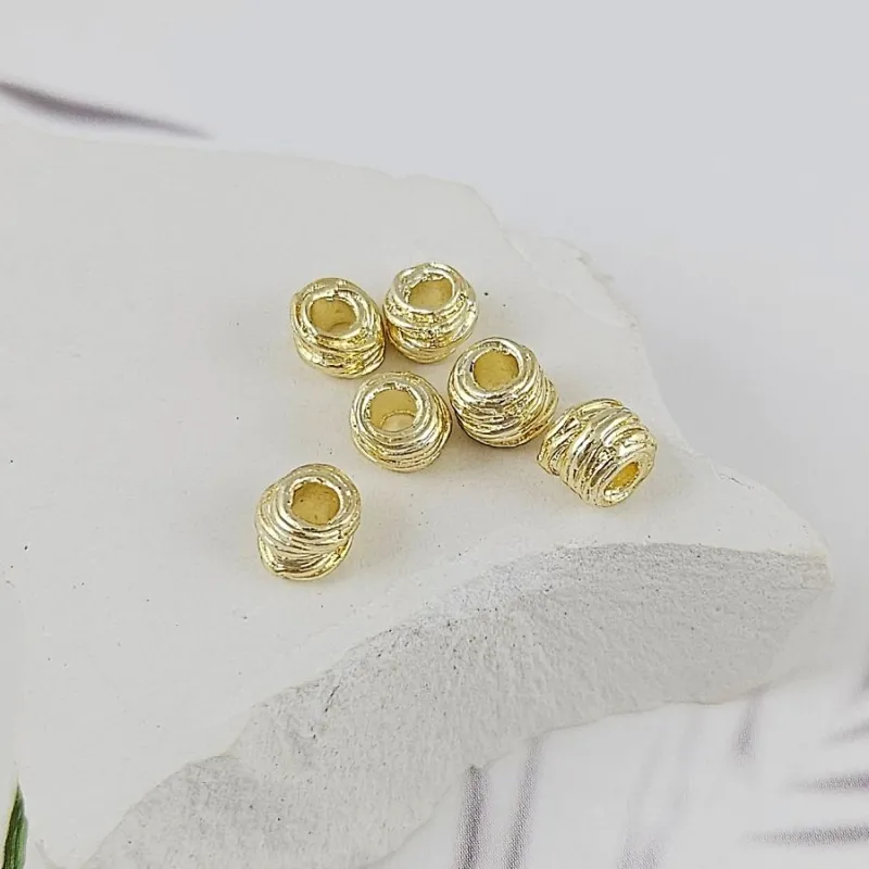 Необычная текстурная бусина фри форм с широким отверстием и выразительной поверхностью — стильный акцент для дизайнерских украшений. Выполнена из латуни и покрыта позолотой 14К, она сочетает в себе природную эстетичность и благородное сияние. Отлично смотрится в этно, бохо и органичных стилях, а благодаря крупному отверстию подходит даже для кожаных шнуров и жгутов.