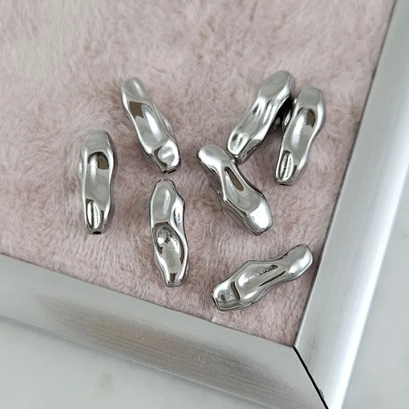 Бусина обладает абстрактной формой с мягкими линиями, что делает её актуальной для украшений в стиле органик, минимализм, футуризм или contemporay. Идеально подходит для создания креативных и нестандартных решений, особенно в сочетании с гладкими бусинами и прозрачными вставками.