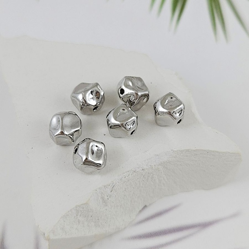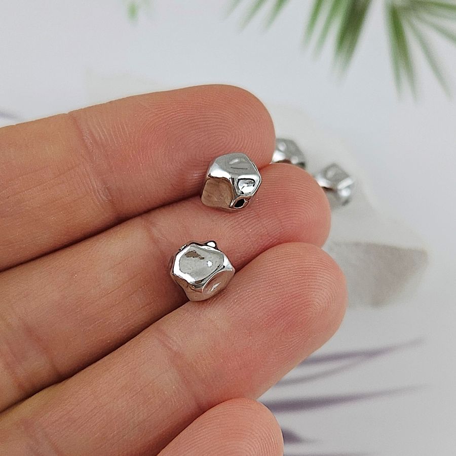 Бусина-разделитель Free Form 7.3×7.9 мм, отверстие ~1 мм, родиевое покрытие, латунь (арт. 9977-Р)