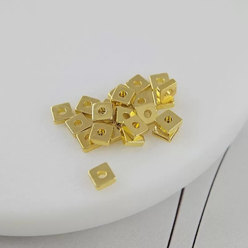 Бусина 6930-4-З — лаконичный разделительный элемент в виде плоского квадрата, покрытый позолотой 18К. Аккуратная форма и зеркальная поверхность создают чистый геометрический акцент, идеально дополняющий современные и минималистичные украшения.