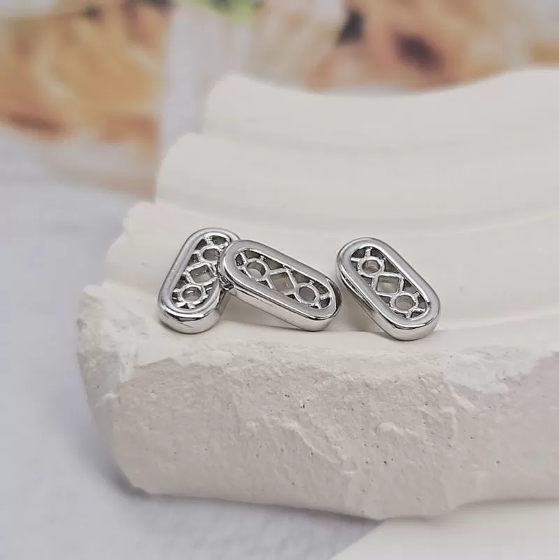 Бусина /разделитель/ на 2 (две) нити 12x6х2.2 мм родиевое покрытие, материал латунь (7457-Р)
