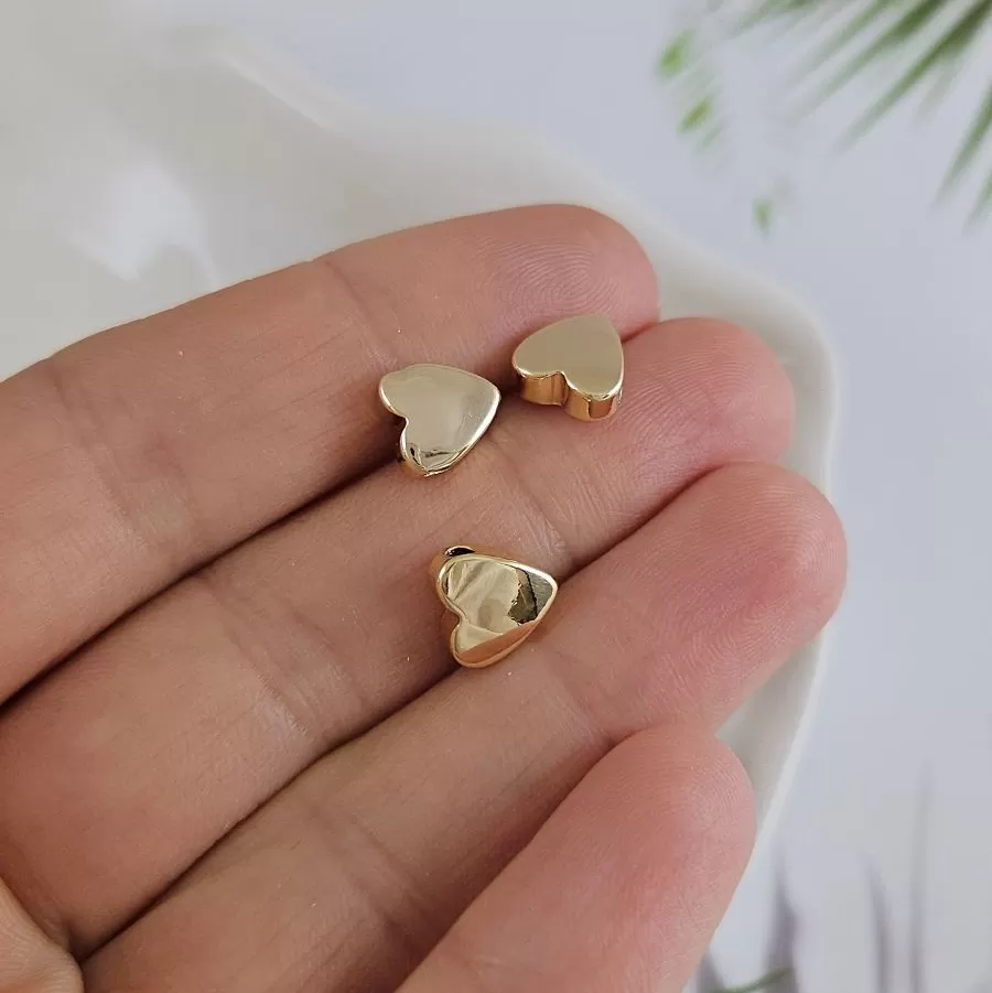 Бусина-разделитель «Сердце» 8×7.8×3.7 мм, отверстие ~1.5 мм, позолота 14К, латунь (арт. 9919-З)