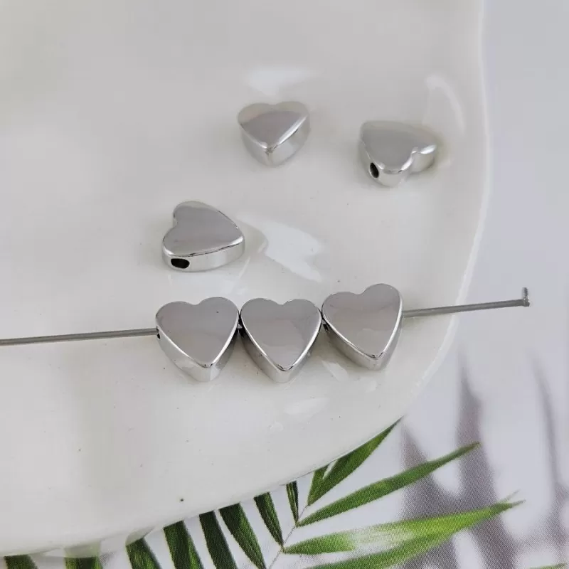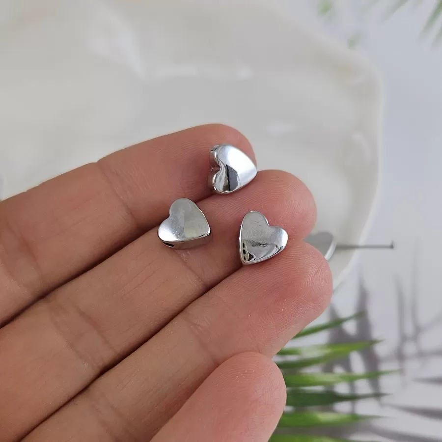 Бусина-разделитель «Сердце» 8×7.8×3.7 мм, отверстие ~1.5 мм, родиевое покрытие, латунь (арт. 9919-Р)