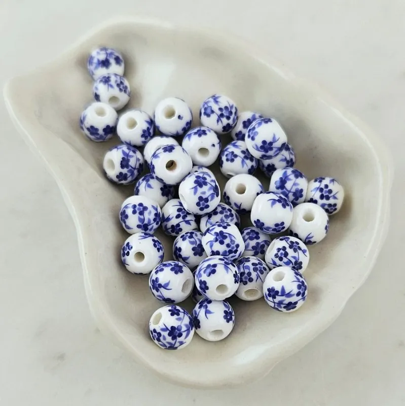 Элегантная круглая керамическая бусина диаметром около 8 мм с изысканным цветочным рисунком — очаровательный элемент для украшений с налётом винтажной эстетики.