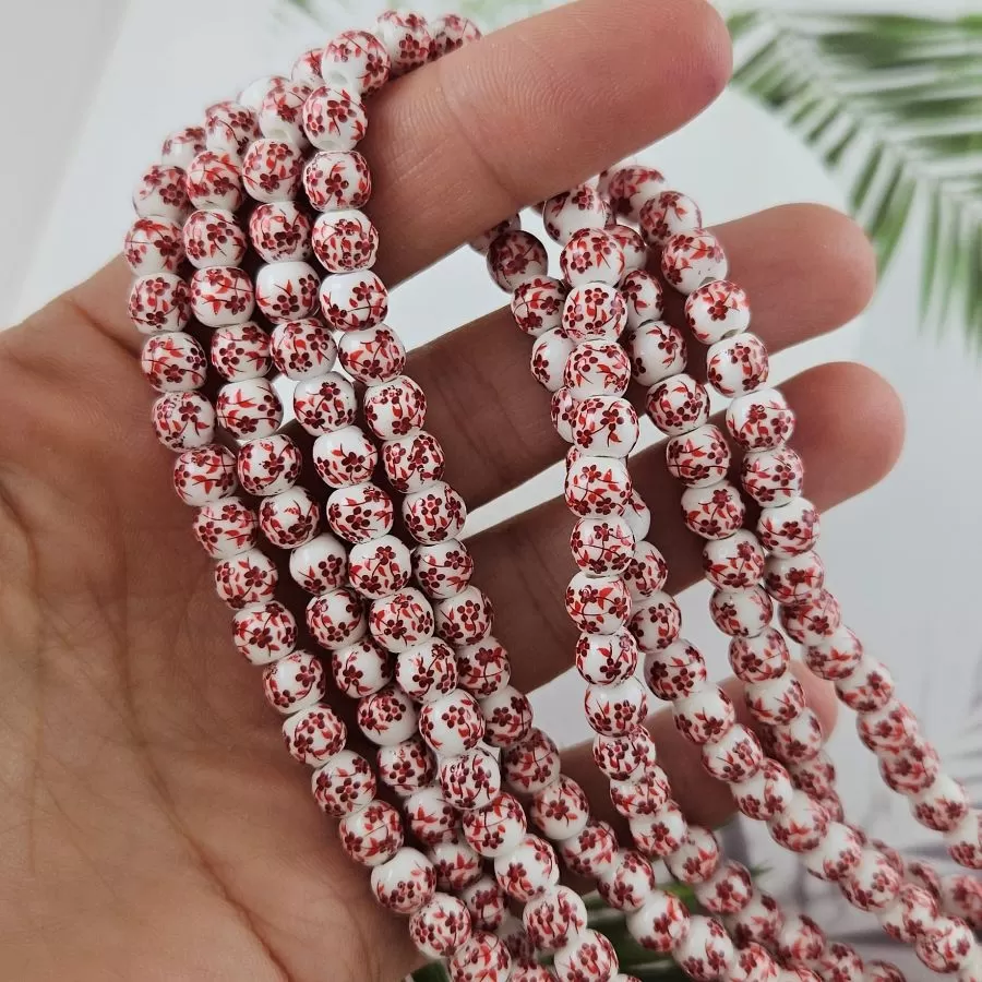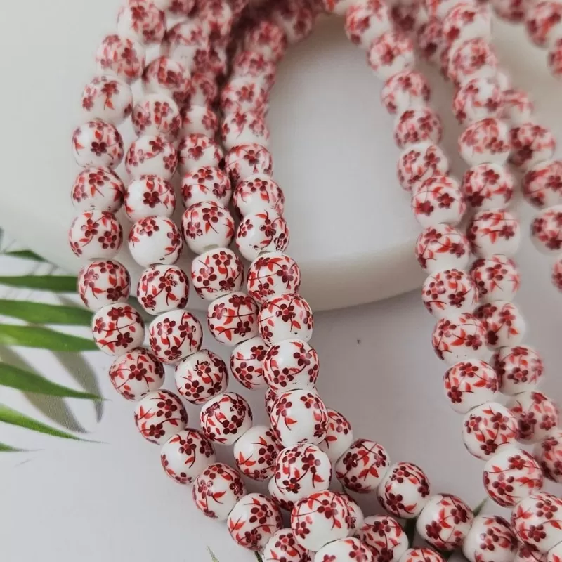 Очаровательные керамические бусины диаметром ~6 мм с изящным красным цветочным узором — идеальное решение для создания нежных и оригинальных украшений. Белая основа украшена тонкой росписью, напоминающей традиционные китайские или винтажные мотивы. Эти бусины отлично подойдут для романтичных и арт-стилизованных изделий.