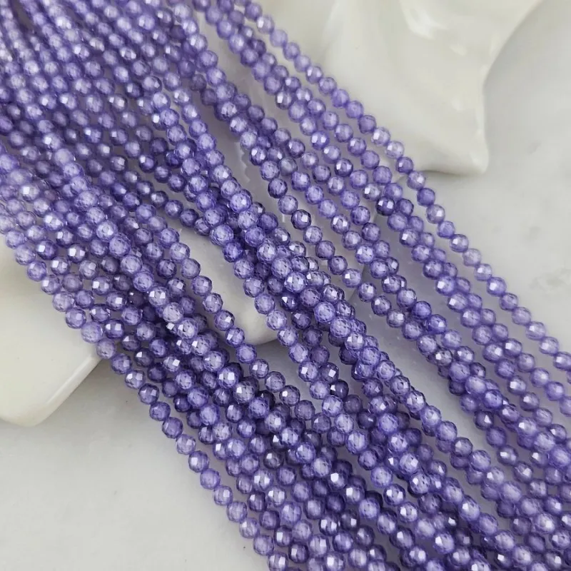 Нить 18 см Фианиты 3 мм круглые граненые бусины, фиолетовый (5472-ТФ)