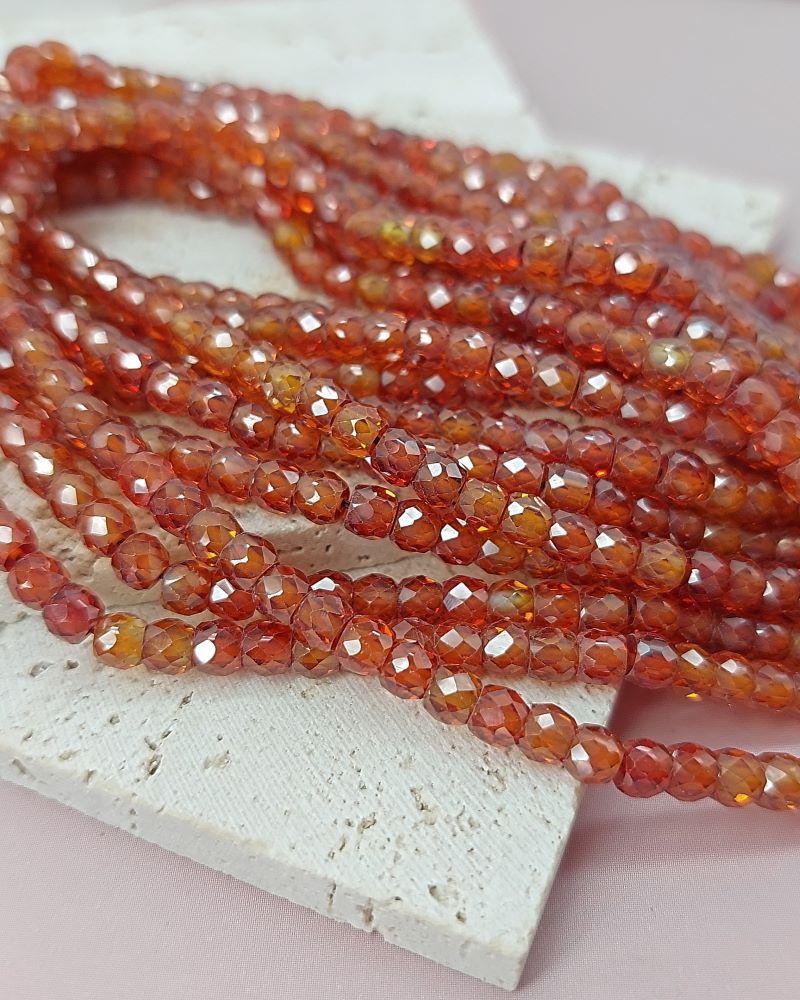 Нить 18 см Фианиты 4х3.5 мм бусины граненый рондель, оранжевый (8142-ОРАНЖ)