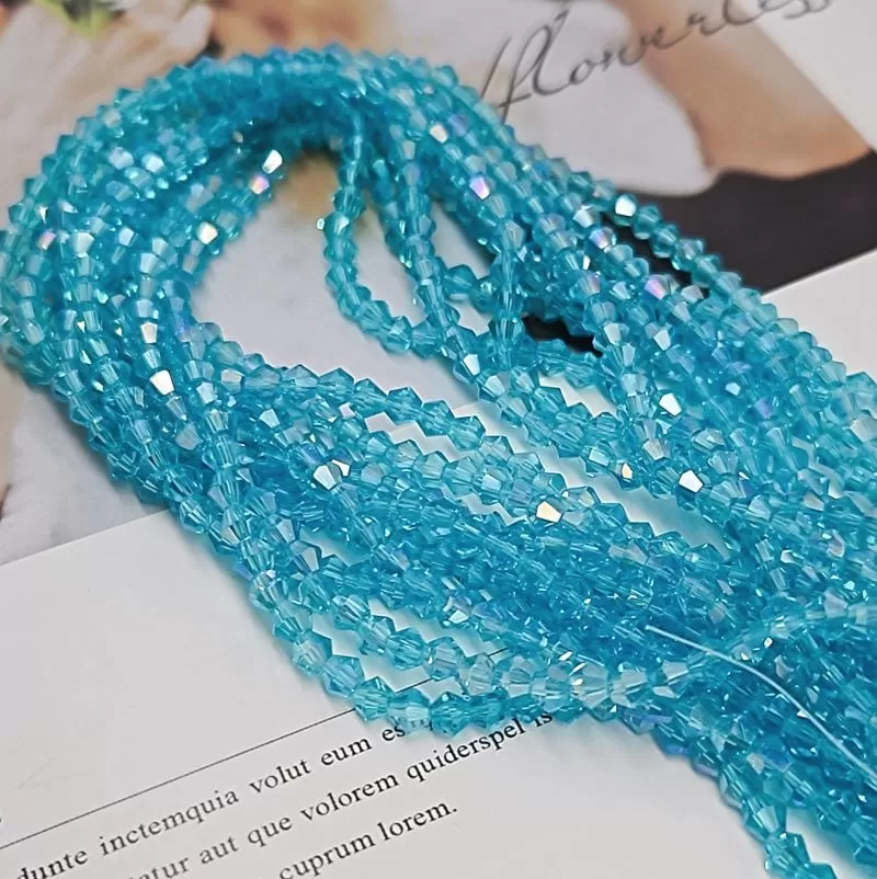 Нить 32 см Хрустальные бусины биконус 4х4 мм темно-голубой АВ (8462-4-ТГОЛ)
