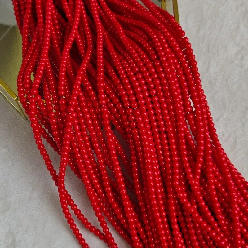 Гладкие стеклянные бусины-шарики насыщенного ярко-красного цвета. Размер около 4,3 мм, отверстие около 1 мм. Яркий, сочный оттенок притягивает взгляд и добавляет украшениям энергию и выразительность. Гладкая поверхность делает их универсальными для любых дизайнов — от повседневных до праздничных. Бусины представлены в виде нити (около 37 см) — так их удобно хранить и считать.