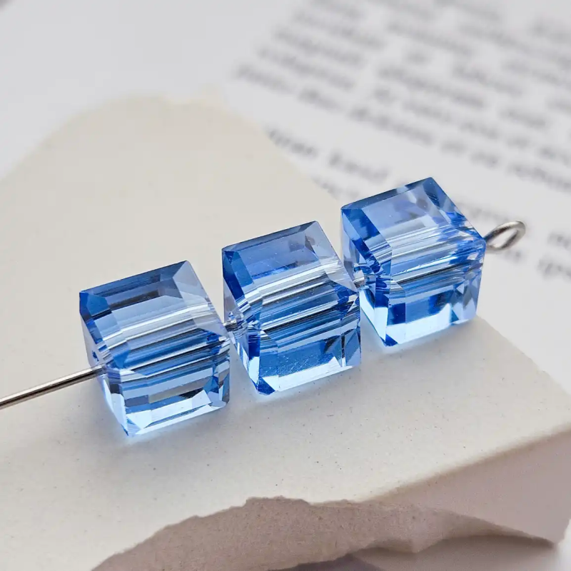 Бусина куб ок. 8 мм, отверстие ок. 1.6 мм, цвет васильковый, материал хрустальное стекло (8642-ВАС)