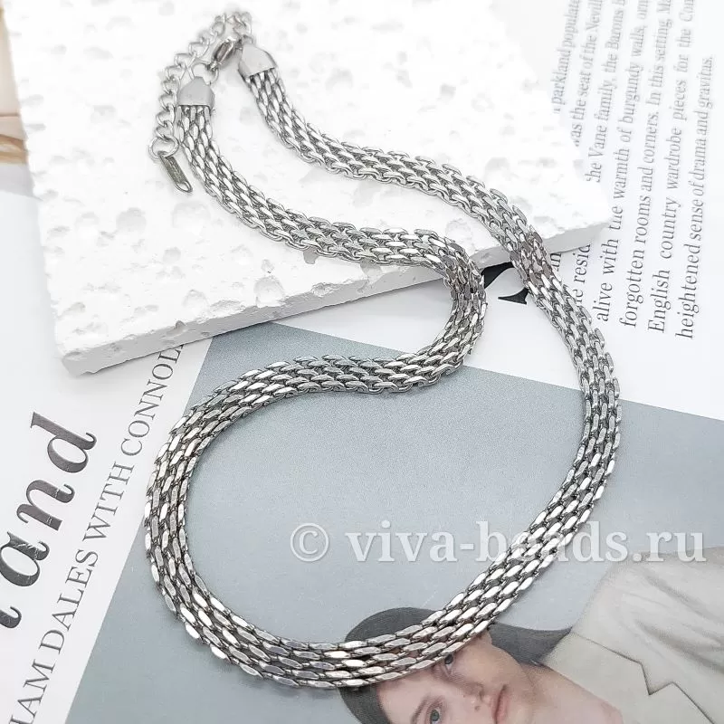 Цепочка с замком готовая 39 см + 5 см удлинитель, толщина 6 мм, материал нержавеющая сталь (7174-СТ)