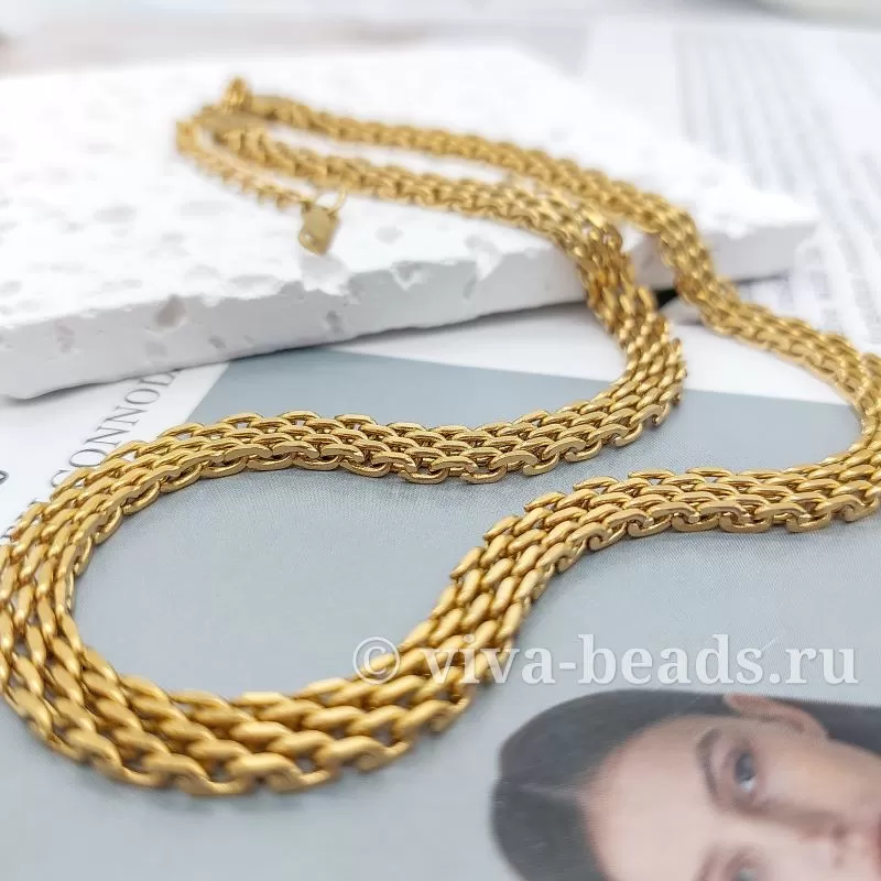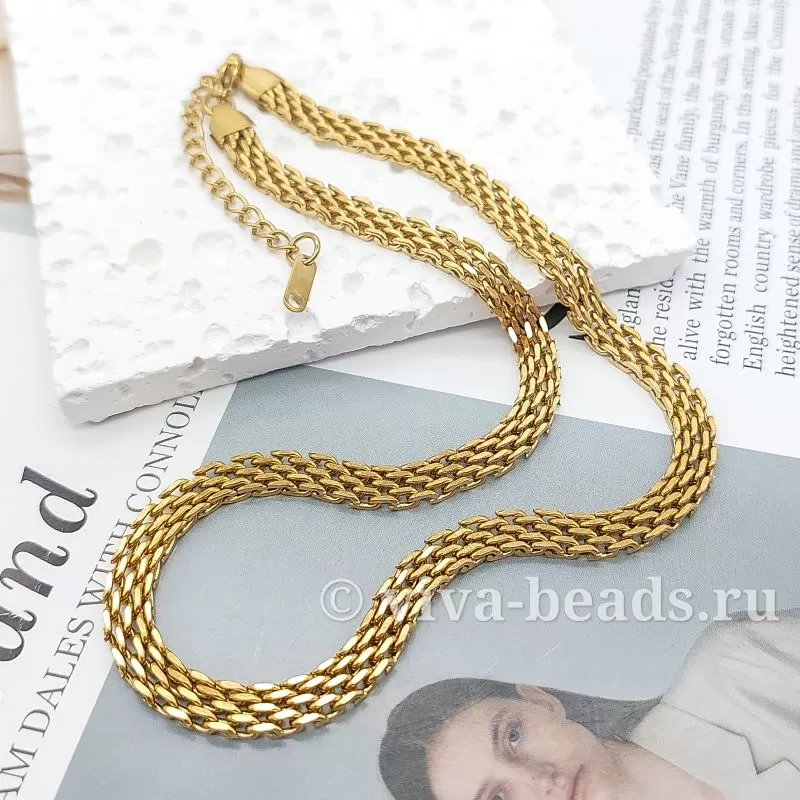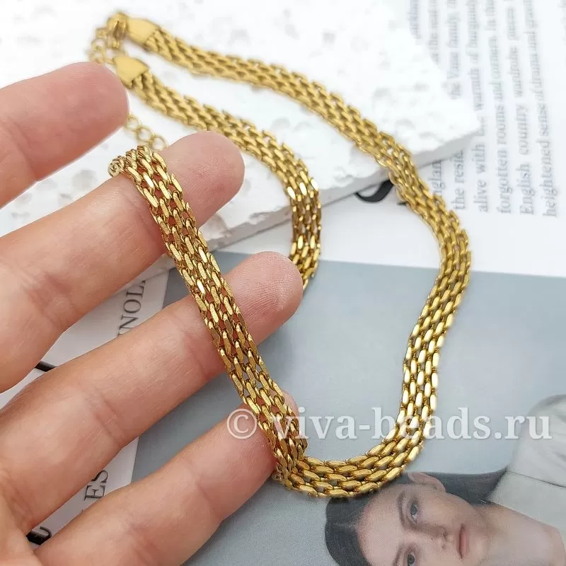 Цепочка с замком готовая 39 см + 5 см удлинитель, толщина 6 мм, позолота, материал нержавеющая сталь (7174-З)