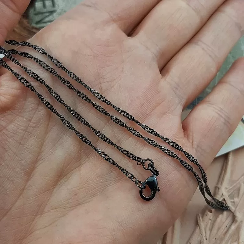 Цепочка черная готовая с замком, толщина 2 мм, замочек 12 мм, общая длина 44 см, материал - латунь, очень хорошего качества (арт. 3165)