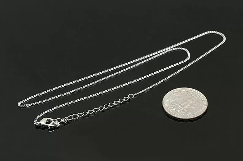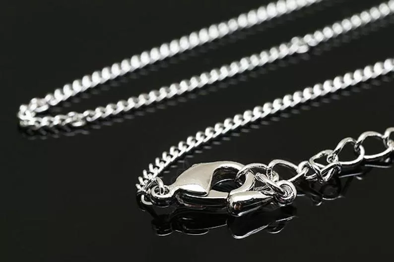 Цепочка готовая с замком и удлинителем, длина 42 см + 5 см удлинитель, толщина цепочки 1 мм, материал - латунь с родиевым покрытием, качественная фурнитура из Южной Кореи (арт. 3669)