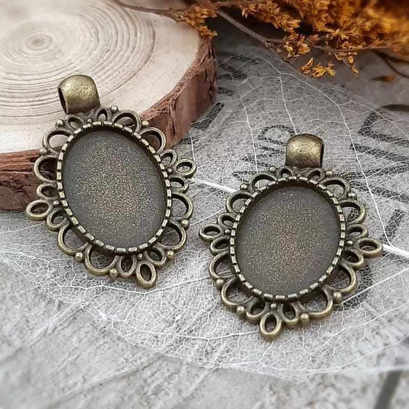 Основа под кабошон металлическая, размер 24*33 мм (с учетом петельки) под кабошон размером 13*18 мм, цвет - античная бронза (арт. 1336)