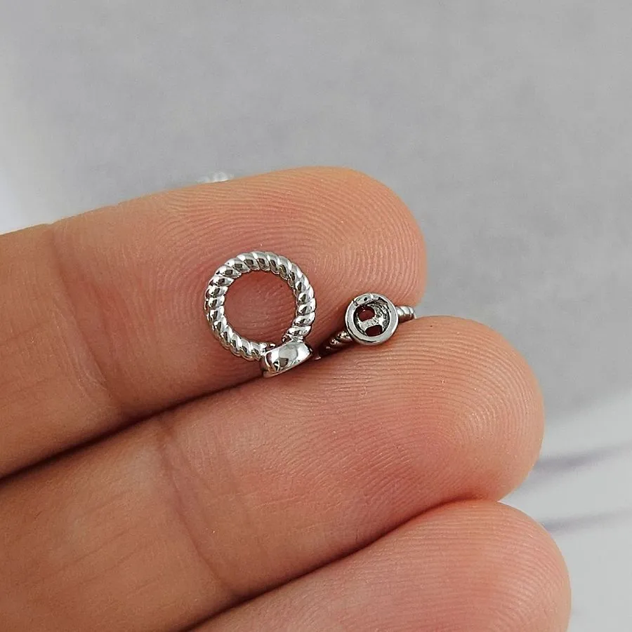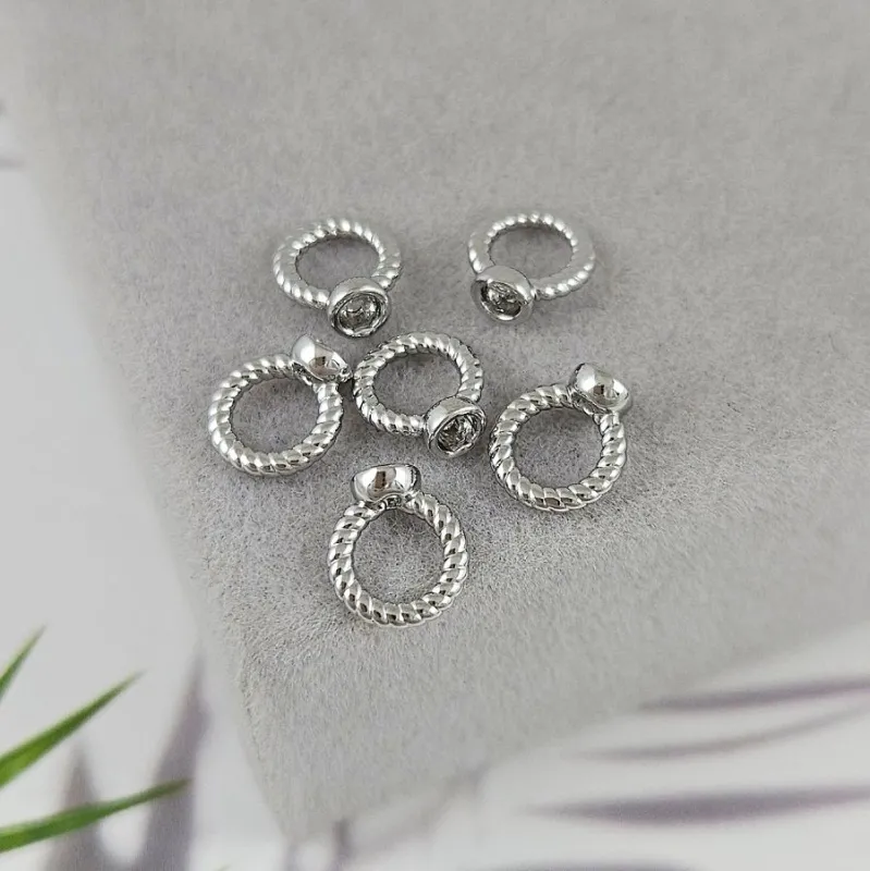 Концевик шапочка с кольцом для создания бижутерии (украшений), диаметр шапочки 3.4 мм, внешний диаметр кольца 7.3 мм, отверстие для тросика (нити) 0.8 мм, родиевое покрытие, материал латунь (9973-Р)