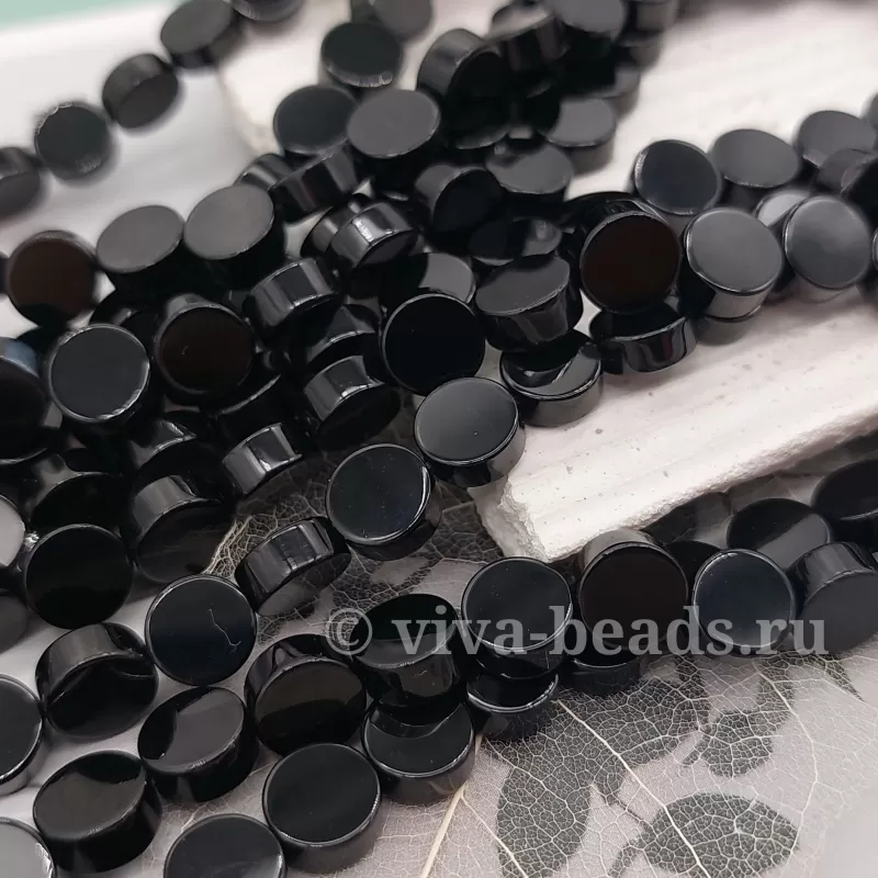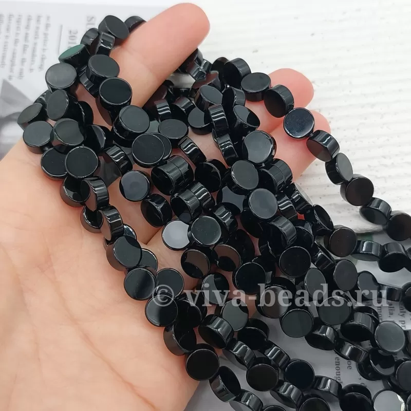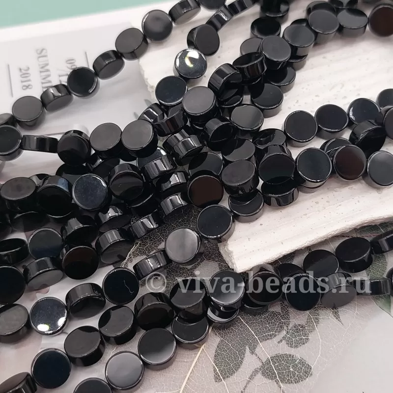 Агат черный таблетка 8х4 мм, отверстие ок. 1 мм (3357-8)