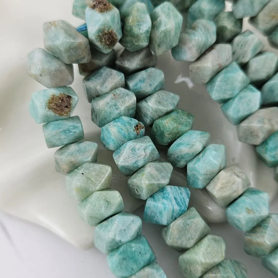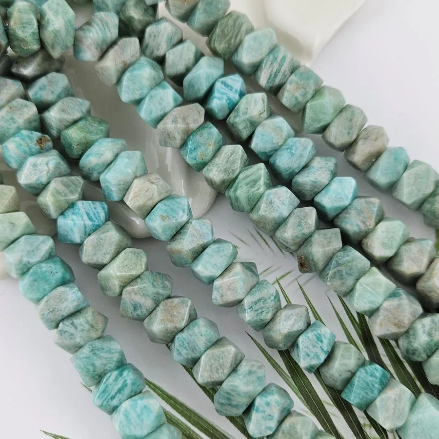 Амазонит отличается уникальной цветовой палитрой — от светло-бирюзового до мятно-зелёного, с включением прожилок, узоров и естественных цветовых переходов. Каждая бусина — неповторимое проявление красоты природы, где естественные вкрапления и неоднородности делают каждую деталь уникальной.