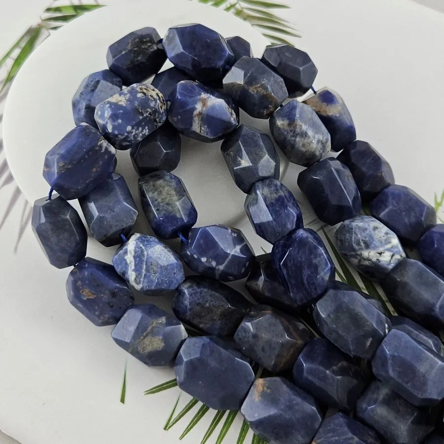 Бусина выполнена в виде многогранника с чётко выраженными гранями, которые красиво преломляют свет. Насыщенный синий цвет содалита дополнен лёгкими переливами и природными узорами, создающими уникальный рисунок на каждой бусине. Крупный размер и выразительная огранка делают бусину заметным элементом любого украшения.