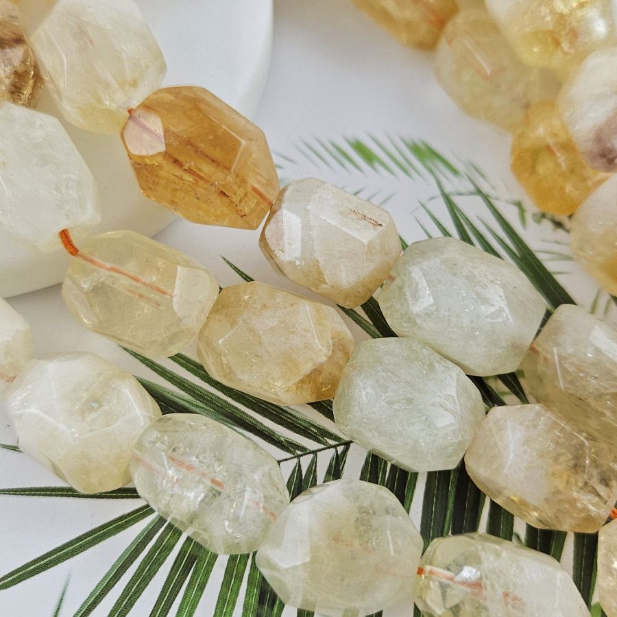 Бусина выполнена в виде многогранника с чётко выраженными гранями, которые красиво преломляют свет. Тёплый золотистый оттенок цитрина дополнен лёгкими переливами, создающими эффект «солнечного сияния». Крупный размер и выразительная огранка делают бусину заметным элементом любого украшения.