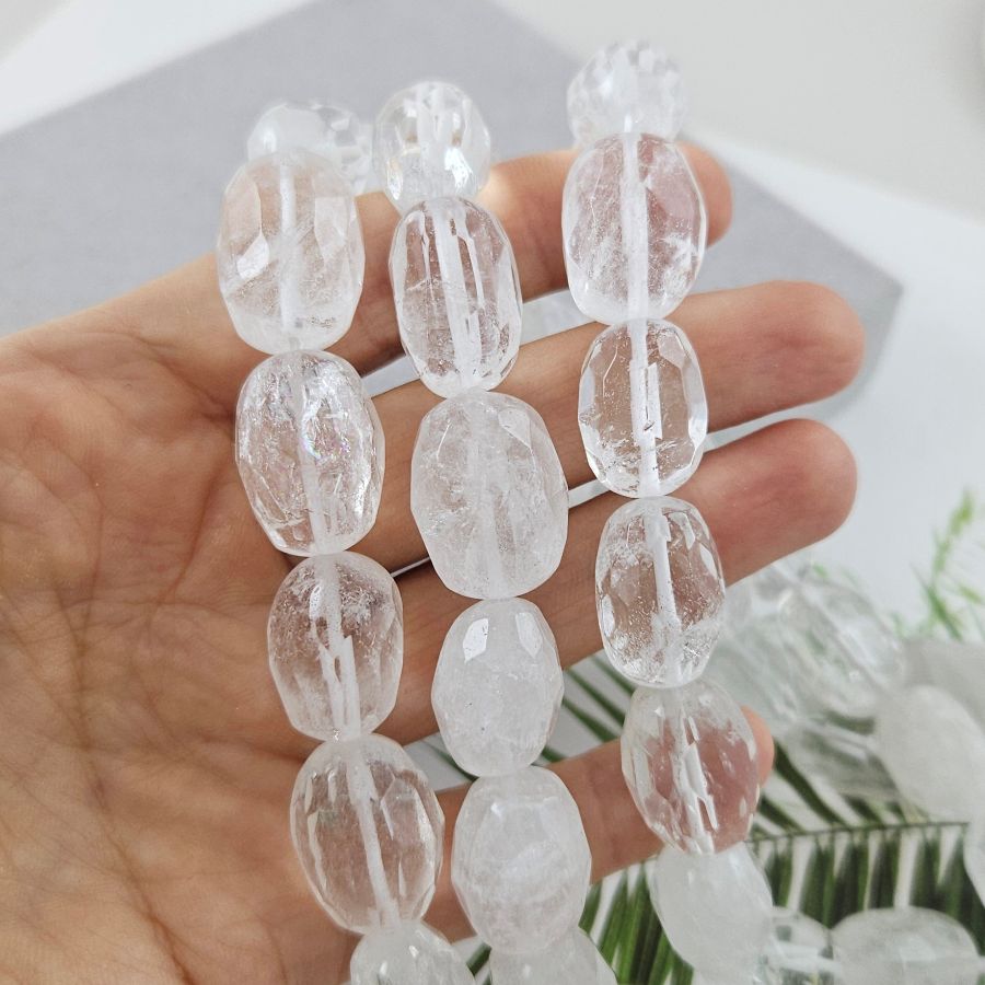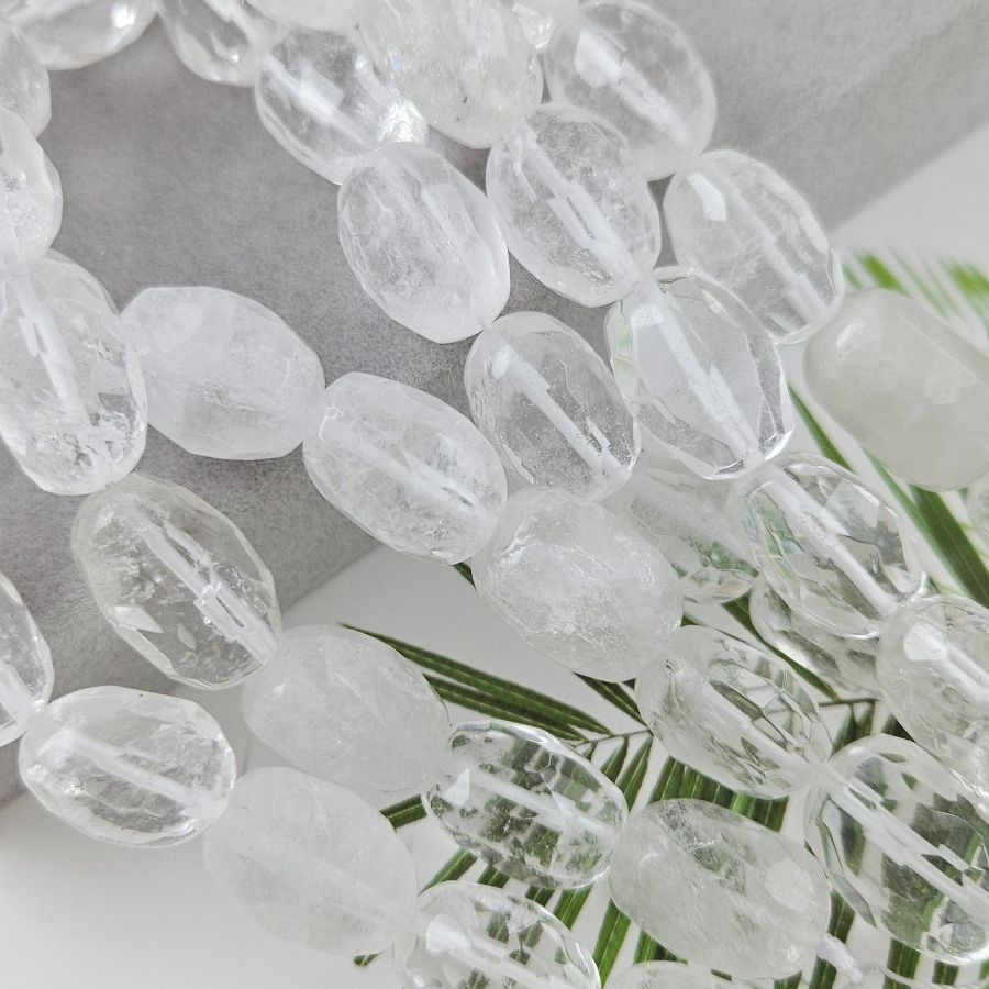 Натуральная гранёная бусина из горного хрусталя овальной формы — изысканный и выразительный элемент для создания уникальных украшений. Каждая бусина размером от 16 до 21 мм по длине и от 11 до 15 мм по ширине обработана вручную, сохраняя природные черты и добавляя лёгкое кристаллическое сияние.