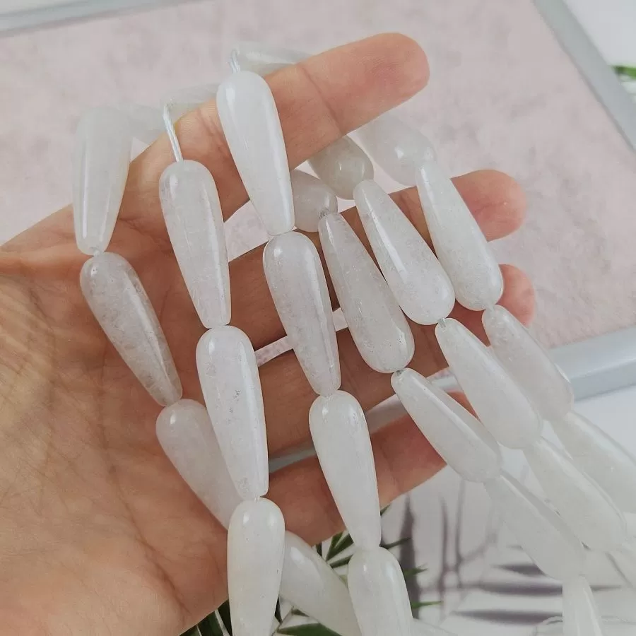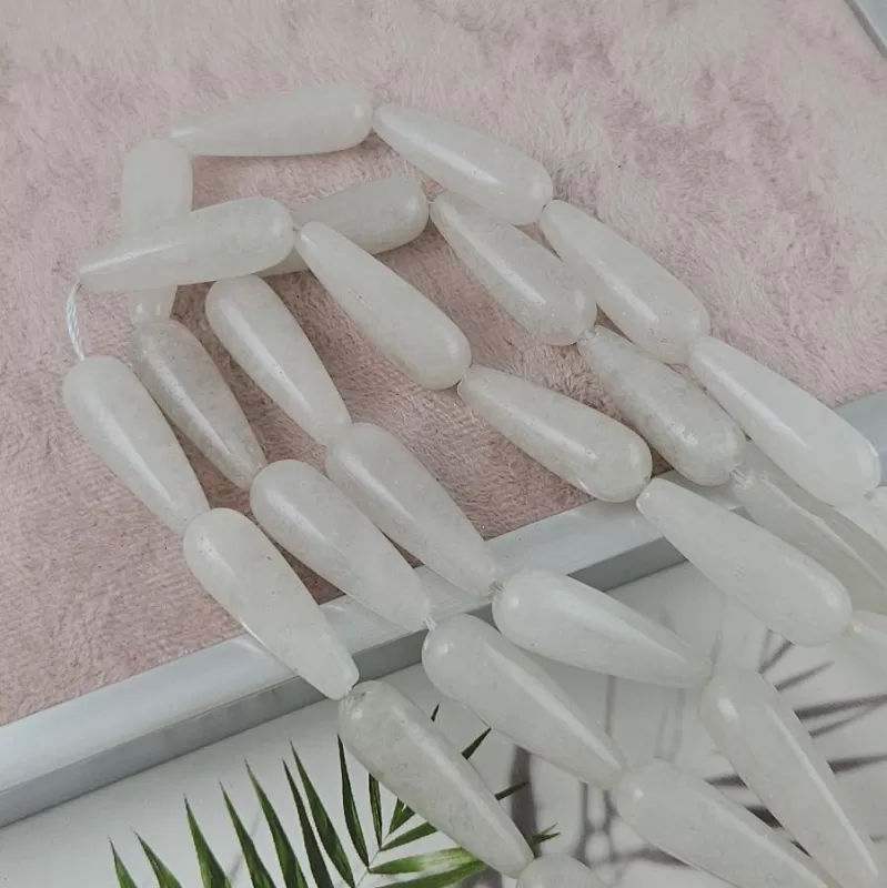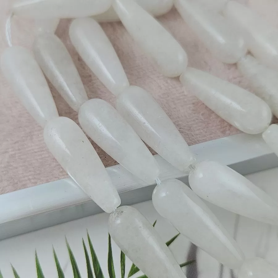 Кварц 9936-КВ — элегантная бусина из натурального молочно-белого кварца, выполненная в форме вытянутой капли. Благодаря своему естественному мягкому блеску и полупрозрачной структуре, кварц придаёт украшениям воздушность и лёгкость. Размер около 30×10 мм делает такую бусину прекрасным кандидатом на роль акцента или симметричной пары для серёг.