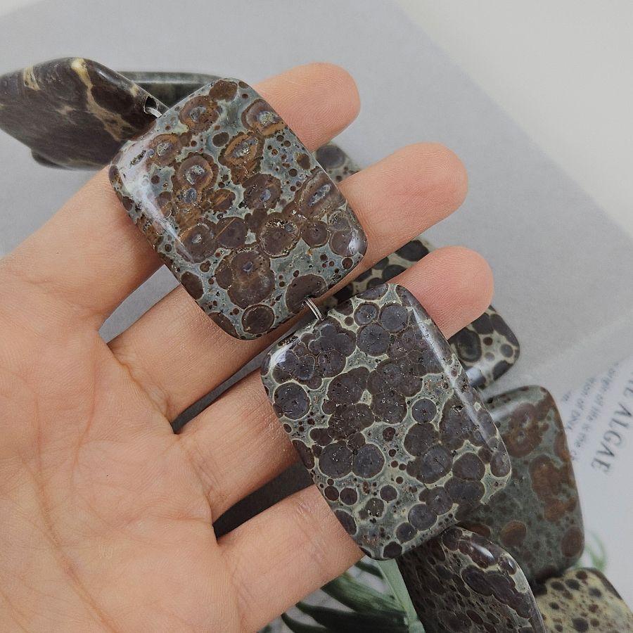 1 шт. Риолит / Леопардовая яшма / ок. 40х29.6х7.6-7.9 мм, крупные прямоугольные бусины (9984)