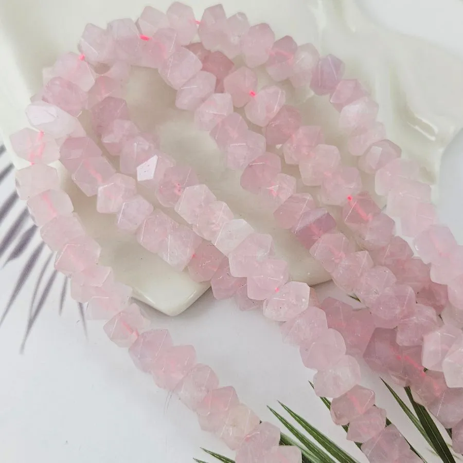 1 шт. Розовый кварц 16-21х7-7.5 мм бусины с крупными гранями (1009-РК)