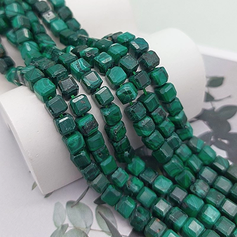 10 шт. Малахит граненый КУБ ок. 5-6 мм (7722)