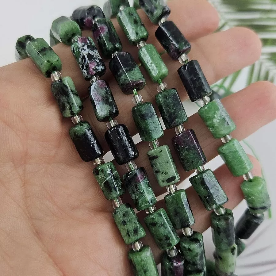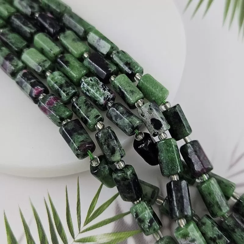 Цоизит 9931-Ц — это редкий природный камень с ярким сочетанием зелёных, чёрных и пурпурных оттенков. Гранёные бусины в форме вытянутых трубочек делают этот материал эффектным и выразительным. Каждая грань отражает свет, подчёркивая природную игру цвета, что делает бусины отличным акцентом в украшении. Продаются поштучно — по 5 штук в упаковке.
