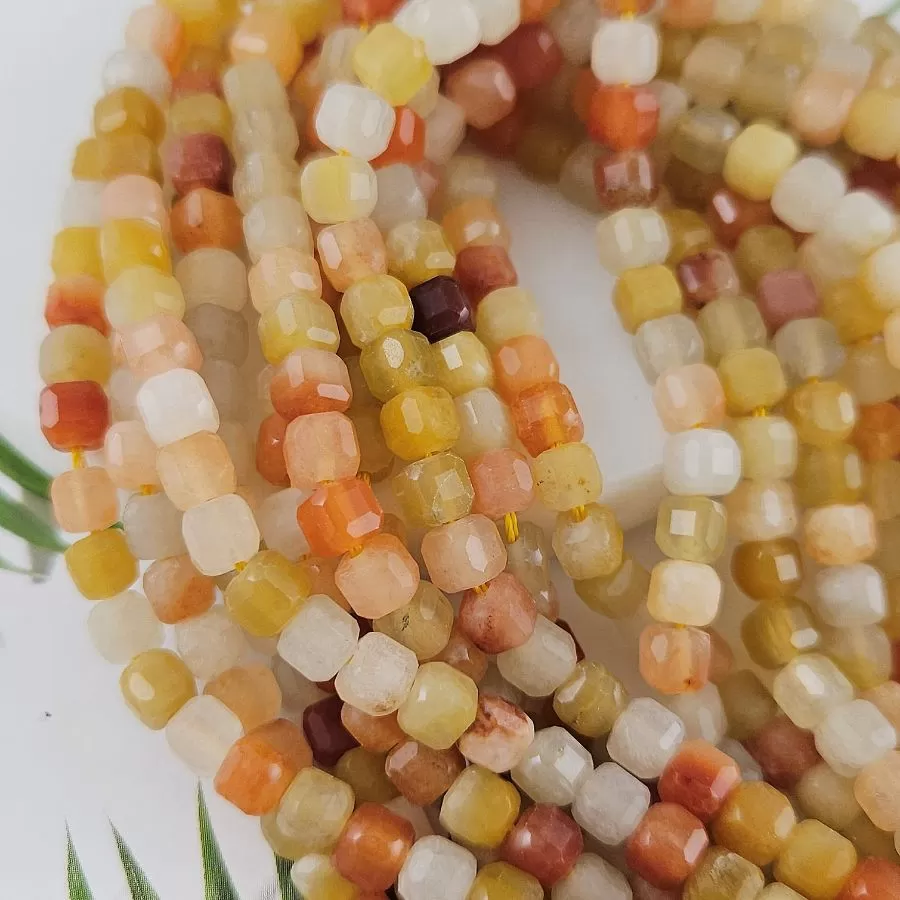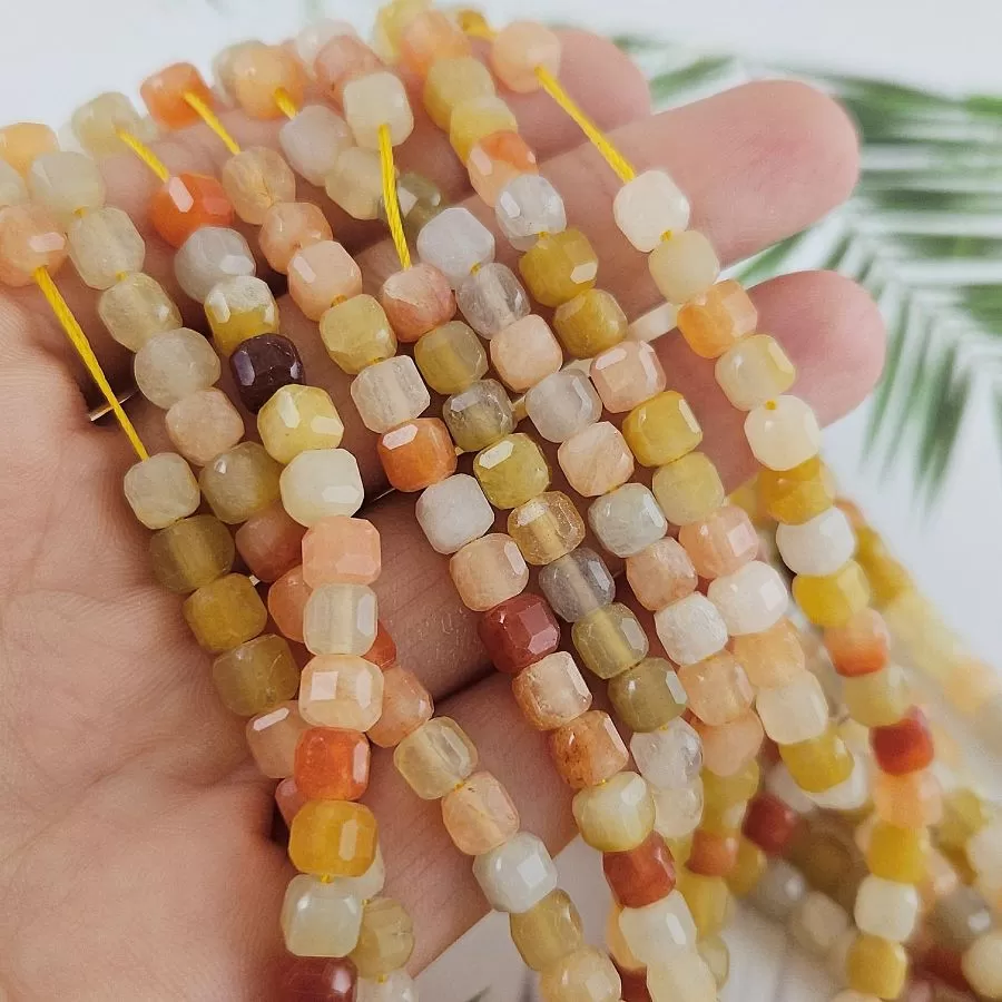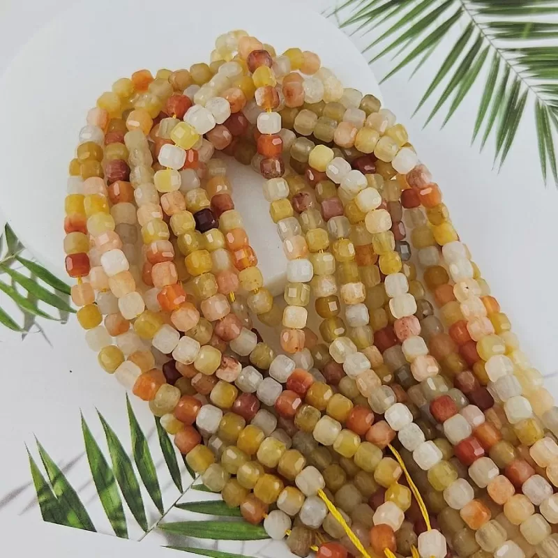 Жадеит жёлтый 9939-Ж — это яркая и солнечная нить из натурального жадеита, сформированного в элегантные бусины в виде гранёных кубиков. Размер бусин 5–6 мм, длина нити — около 15 см. Тёплая палитра — от нежного насыщенно-жёлтого до кремового, карамельного и янтарного оттенков — придаёт жизнерадостность и энергию любому украшению. Благодаря аккуратным граням, кубики мягко играют светом, подчёркивая благородную структуру камня.