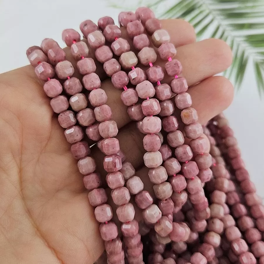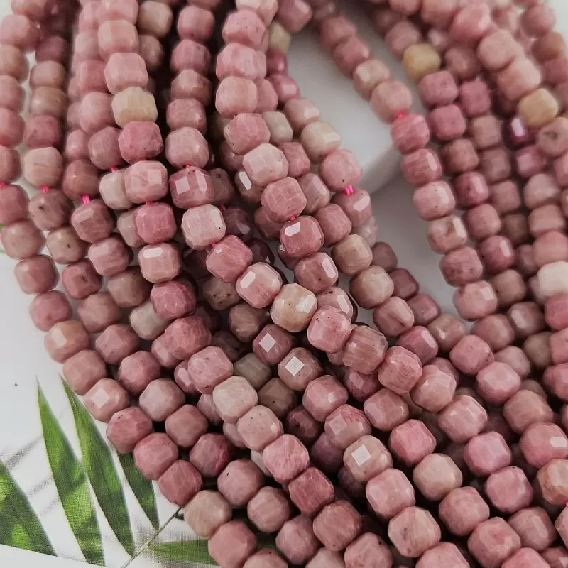 Нить 16 см, Родонит 5–6 мм, бусины гранёный куб, отверстие ок. 1 мм (арт. 9939-РОД)