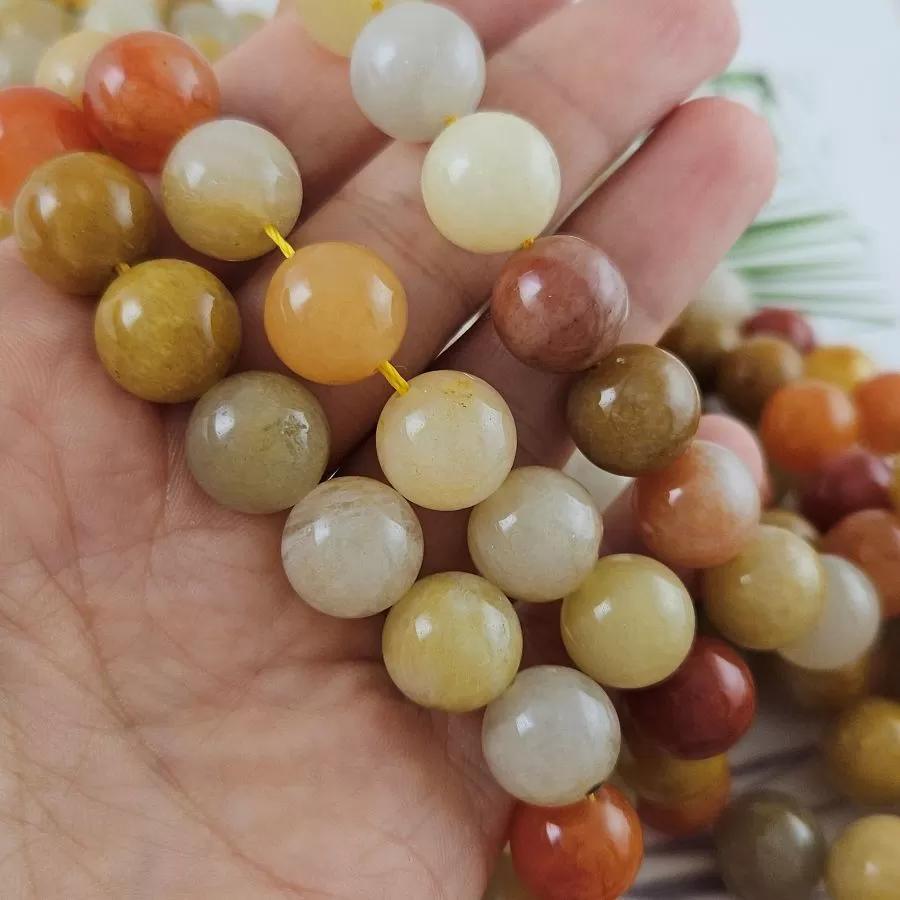 Жадеит 9935-12 — это нить из крупного натурального жадеита с характерной природной окраской в тёплой палитре. Бусины имеют форму гладкого шара диаметром около 12.5 мм — идеальны для создания эффектных, выразительных украшений с центральным акцентом. Камень сохраняет природную фактуру: лёгкую полупрозрачность, неоднородные оттенки и естественные вкрапления.