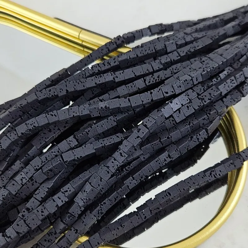 Нить лавы натуральной 4 мм, форма куб, чёрный — строгая геометрия природной силы