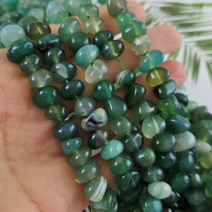 Нить 19 см, Агат зелёный 10–12 мм, бусины фри форм (галтовка), отверстие ок. 1 мм (арт. 9937-АЗ)