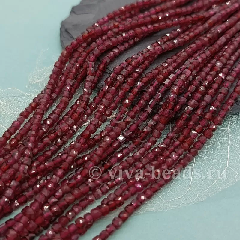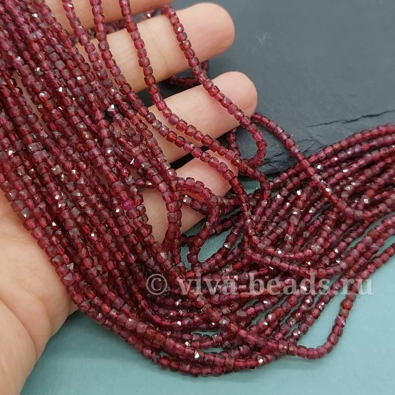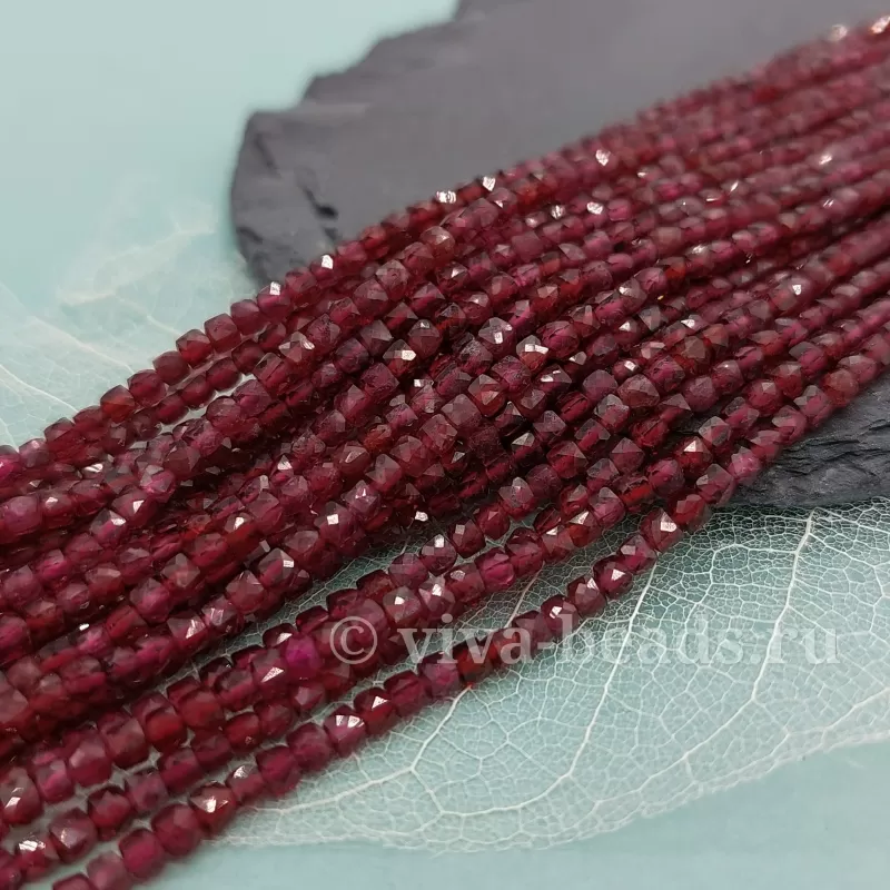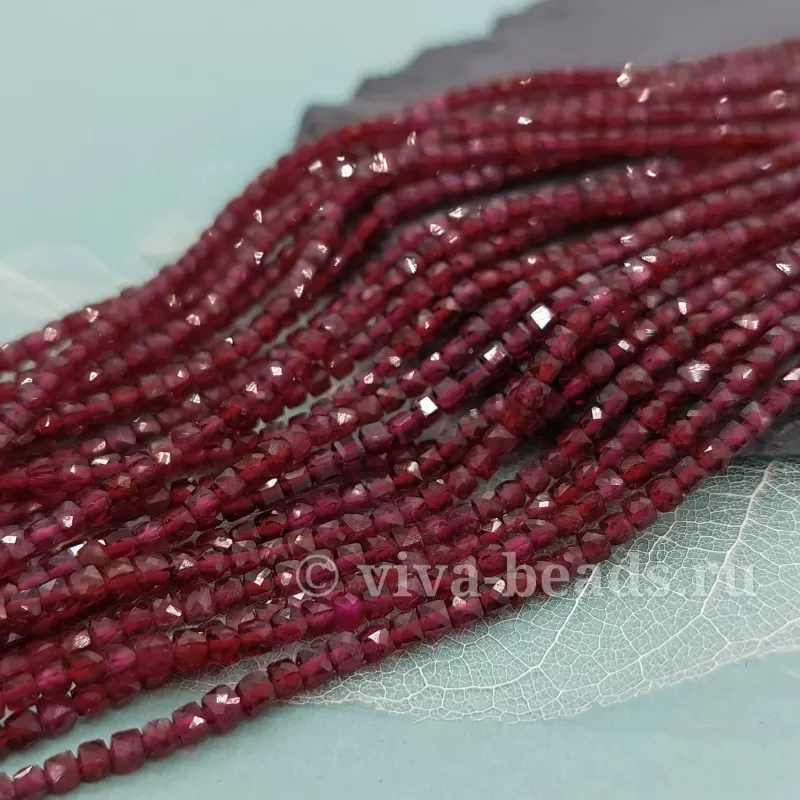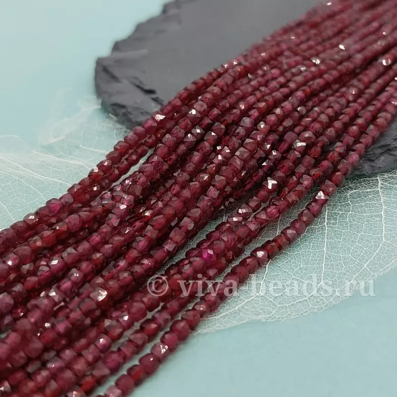 Нить 19 см Гранат граненый куб 2.3 мм (6557)