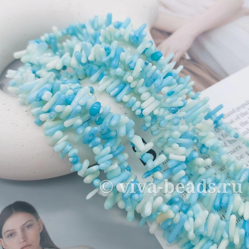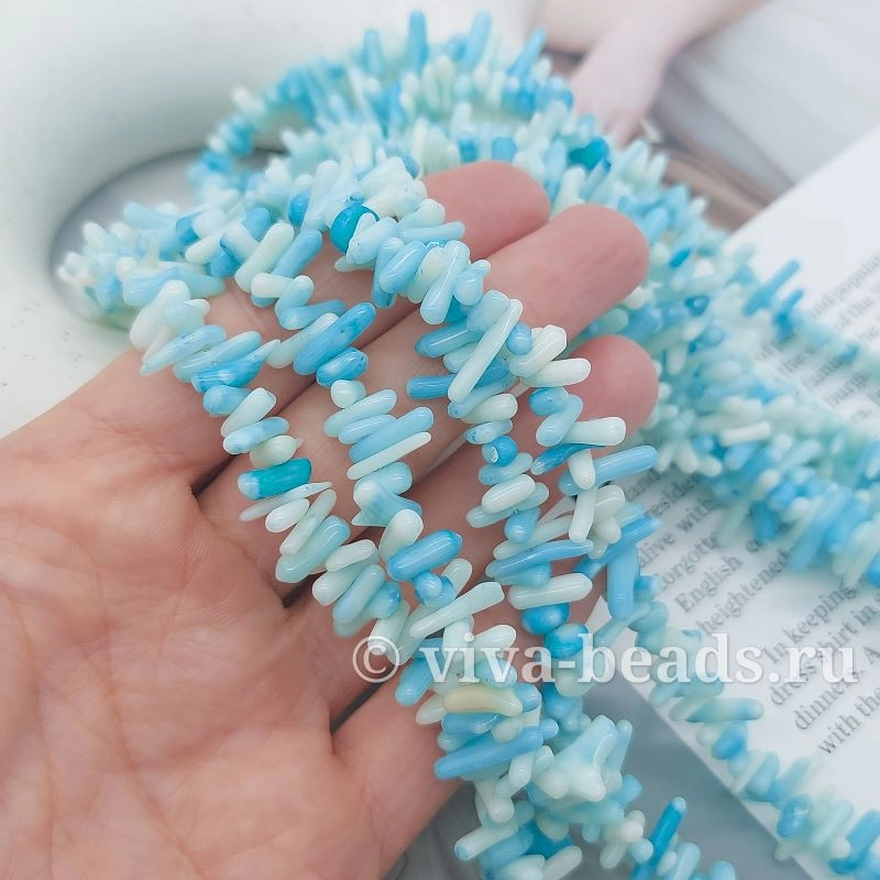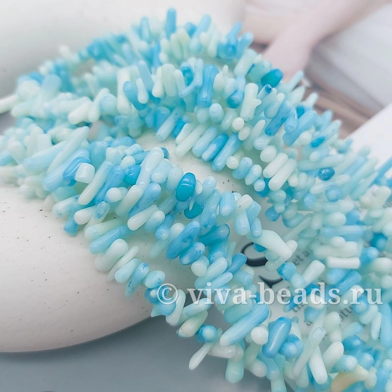 Нить 19 см Коралл игольчатый (палочки) 5-17 мм голубой (2887-Г)