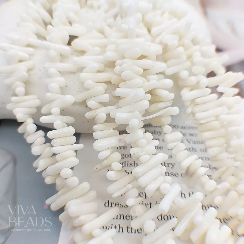 Коралл игольчатый, размер 5-11*1-3 мм, отверстие ок. 0,5 мм, цвет БЕЛЫЙ (арт. 1964)