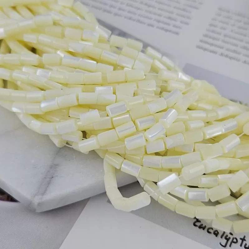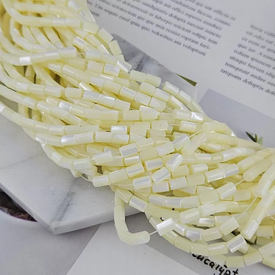 Нить 19 см Перламутр натуральный 6х4 мм трубочка, сливочный (5395)