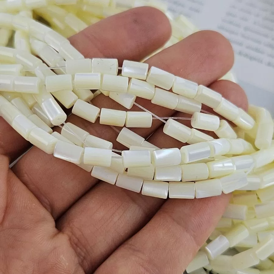 Перламутр натур. белый 6х4 мм, отверстие ок. 0.7 мм, трубочка, цвет сливочный, не тонированный (5395)