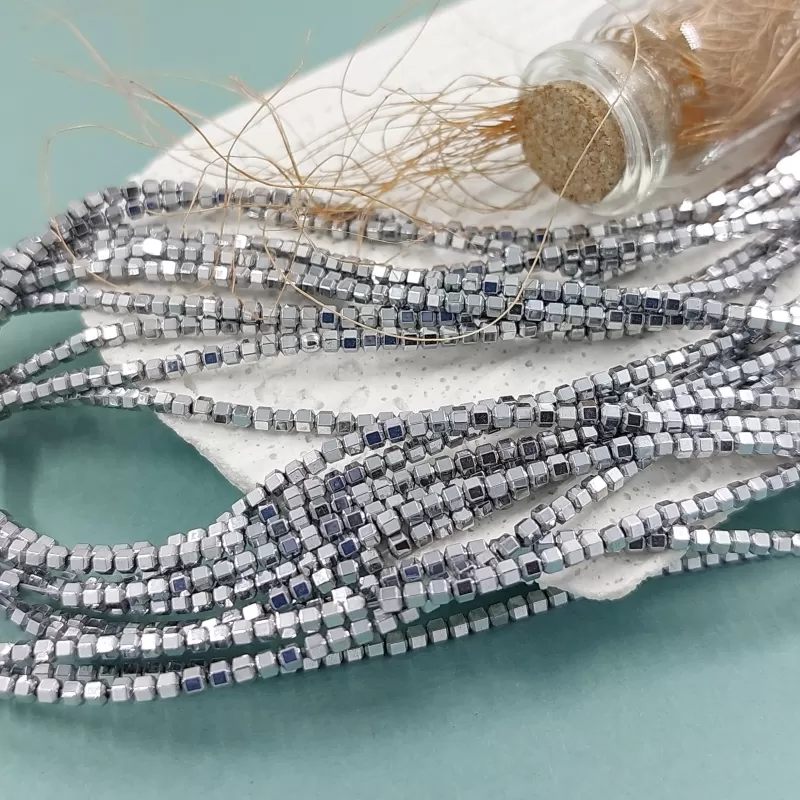 Гематит 2 мм, отверстие ок. 0.5 мм цвет платина (6206-П)