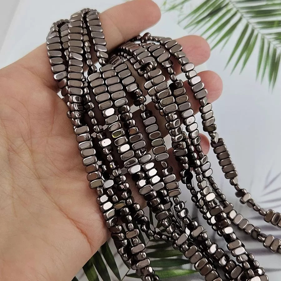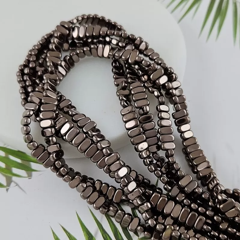 Нить 20 см Гематит 6х3 мм прямоугольные бусины, цвет коричневый (6205-6-КОР)