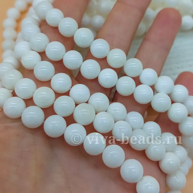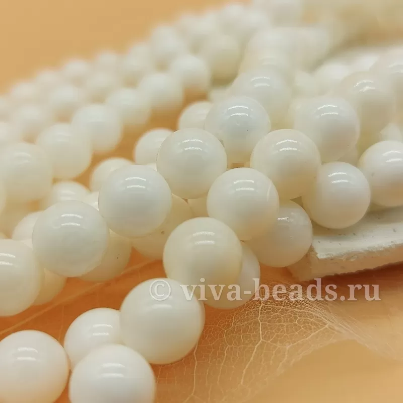 Перламутр натуральный белый гладкие бусины ок. 8,5 мм, отверстие ок. 1 мм (арт. 3113)