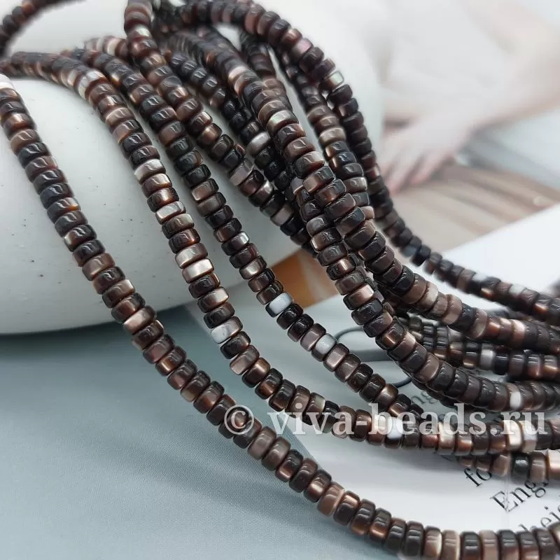Нить 20 см Перламутр натур. темный шайба ок. 4х2 мм (6633)