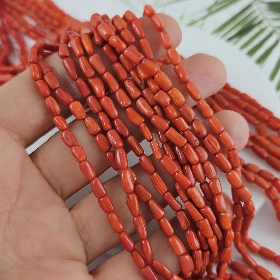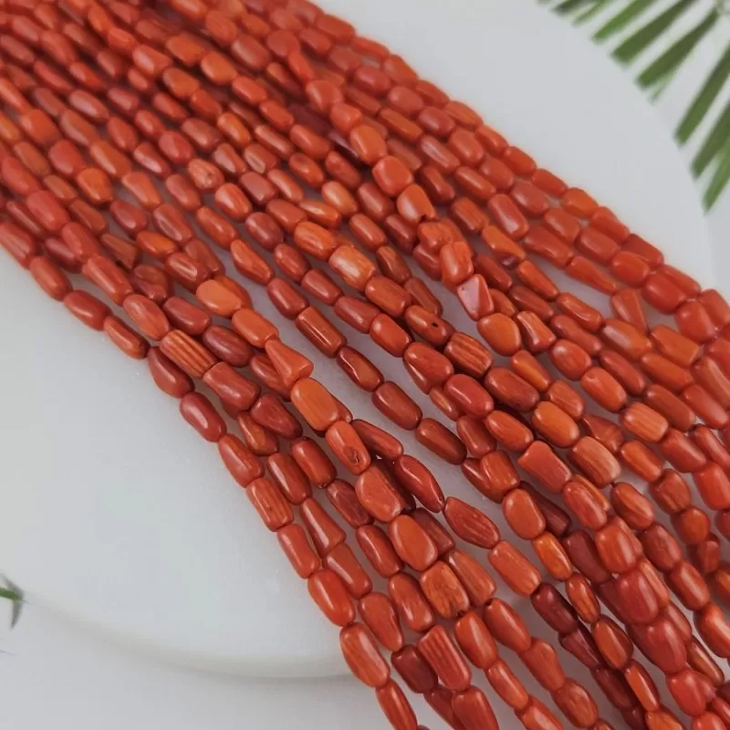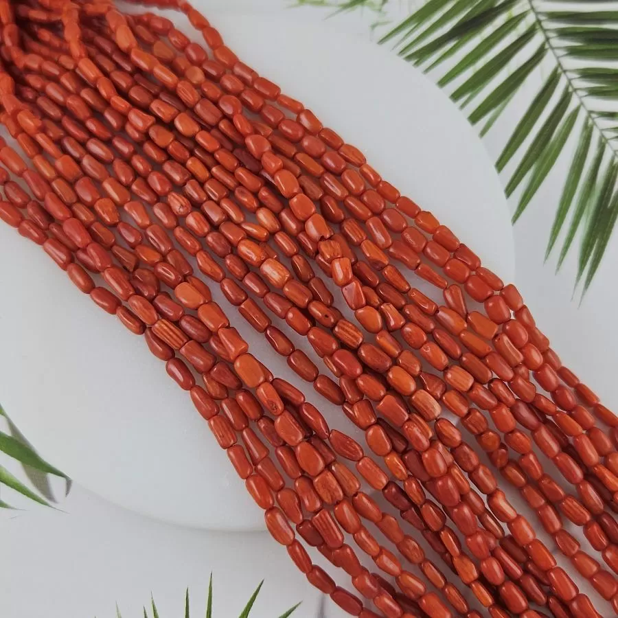 Нить 22 см Коралл бамбуковый тонированный ок. 2.6-3.5х4.4-5.7 мм, палочки мини, коралловый (9930)