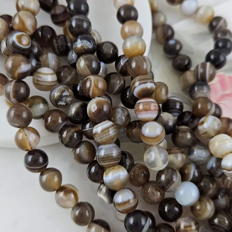 Коричневый полосатый агат — это символ стабильности, спокойствия и внутренней силы. Благодаря полнотелой форме и насыщенным природным оттенкам, эти бусины станут эффектной основой для украшений в этно, классическом, бохо и винтажном стилях. Натуральный рисунок полос придаёт особый характер каждому элементу.
